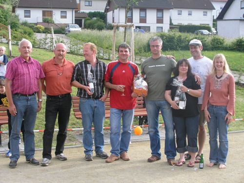 Die Sieger der ersten Holzerather " Boule-Open " werden geehrt.
